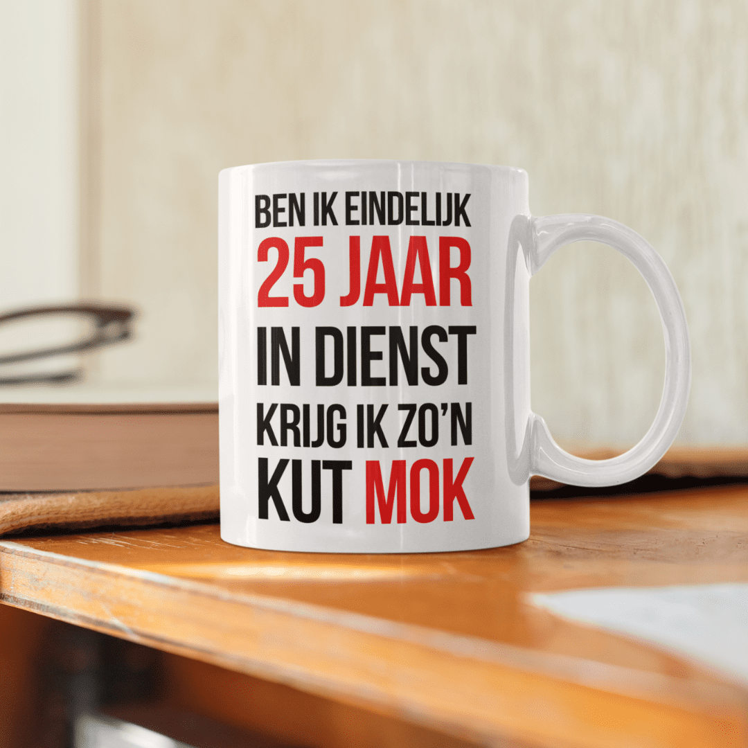 Een werkjubileum is een speciale mijlpaal, en wat is een betere manier om het te vieren dan met een mok die de realiteit van elk cadeaupakket weerspiegelt? Personaliseer de mok met de juiste dienstjaren en verras je collega’s met een cadeau dat ze niet snel zullen vergeten!
