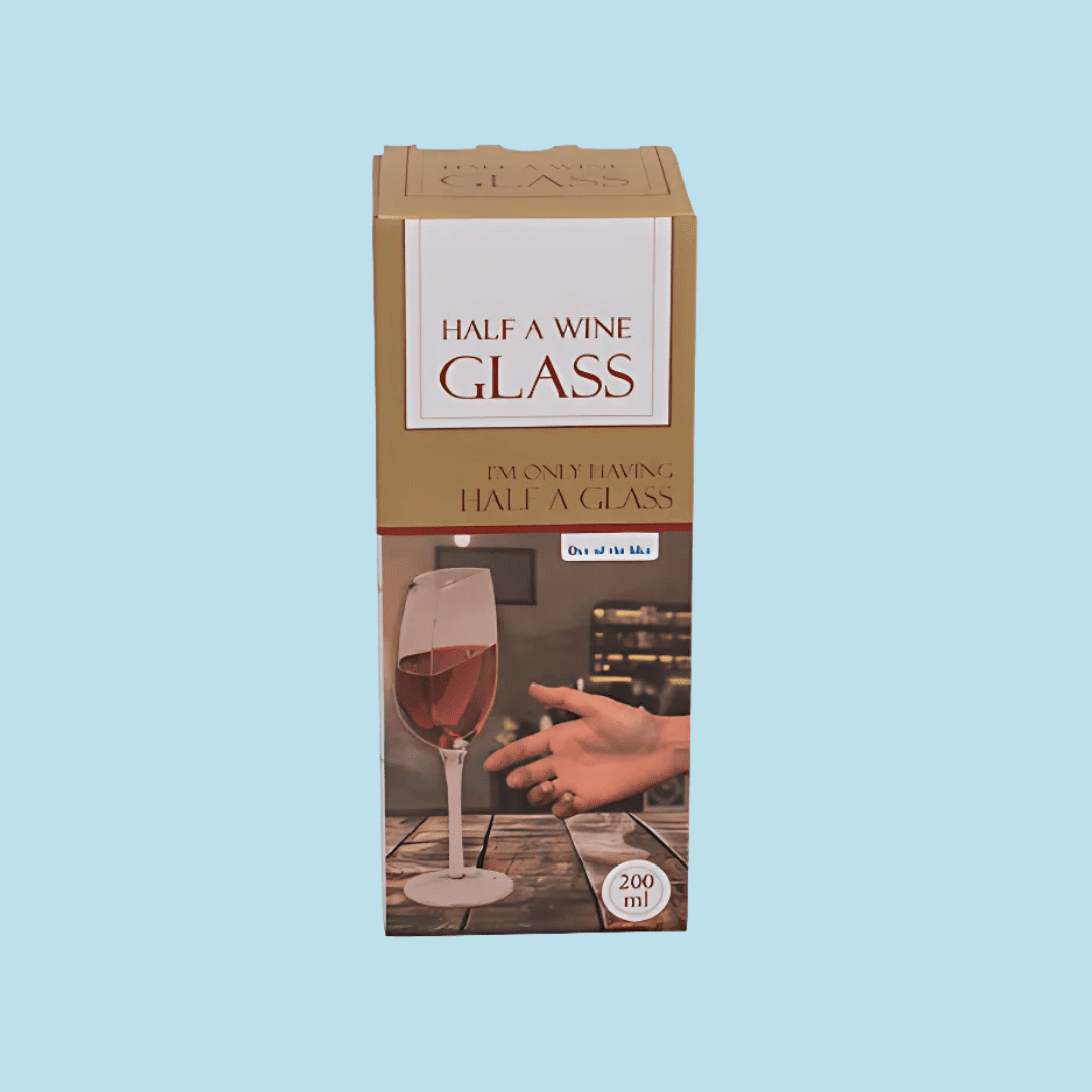 Ken jij iemand die altijd zegt: “Doe mij maar een half wijntje”? Dan is dit Half Wijnglas het perfecte cadeau! Dit glas is doormidden gezaagd, maar je kunt er nog steeds normaal uit drinken. De platte kant zorgt voor een hilarisch effect op tafel en is gegarandeerd een conversation starter op feestjes.