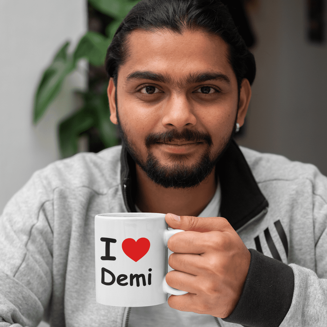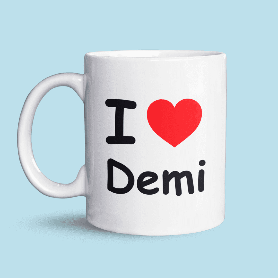 Of je nu je liefde voor Demi, koffie of je huisdier wilt delen: deze mok maakt het mogelijk! Een uniek, origineel cadeau dat altijd een glimlach oplevert. Kies zelf de naam of tekst en maak ‘m helemaal eigen.