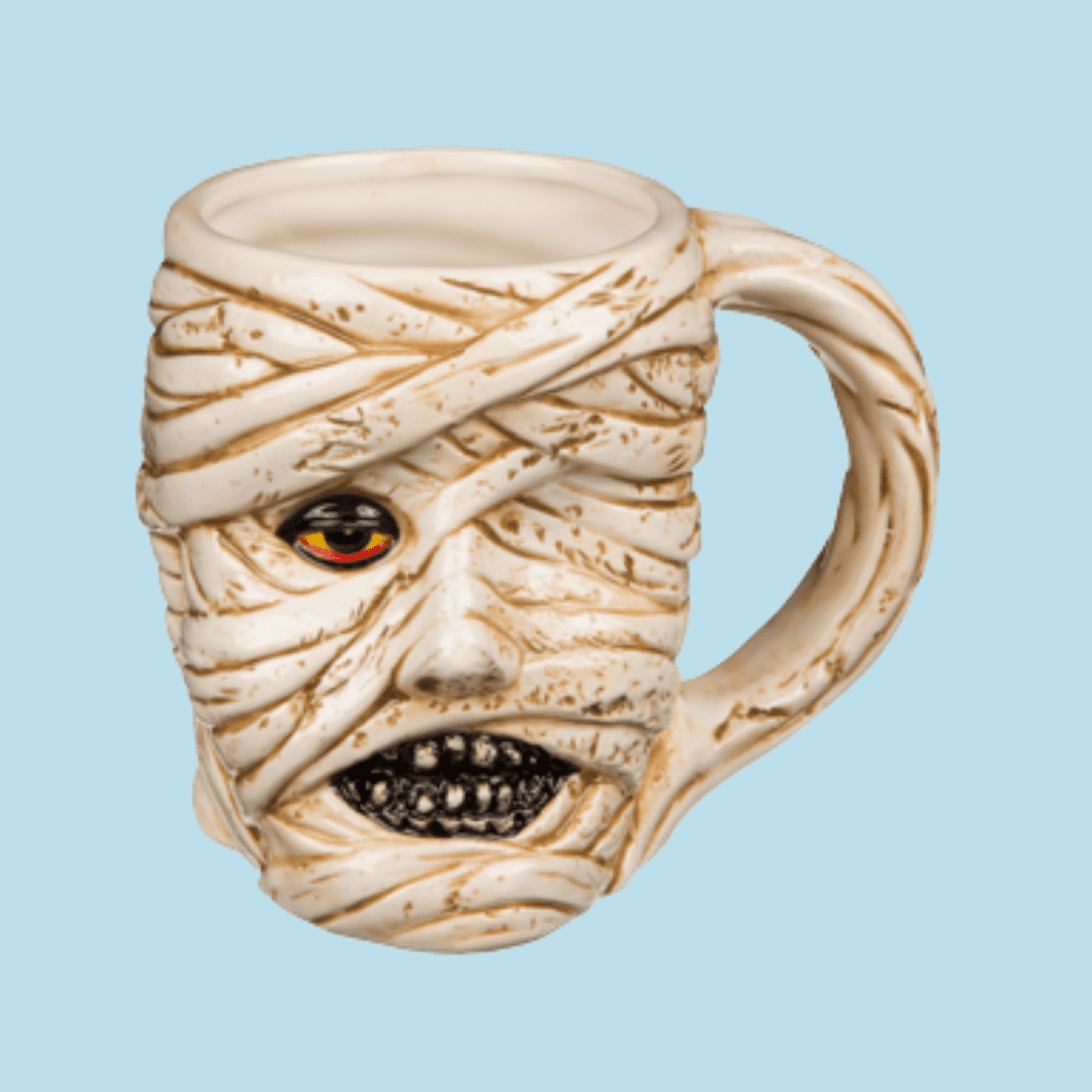 - Uniek design: Griezelige 3D-mok in de vorm van een mummie