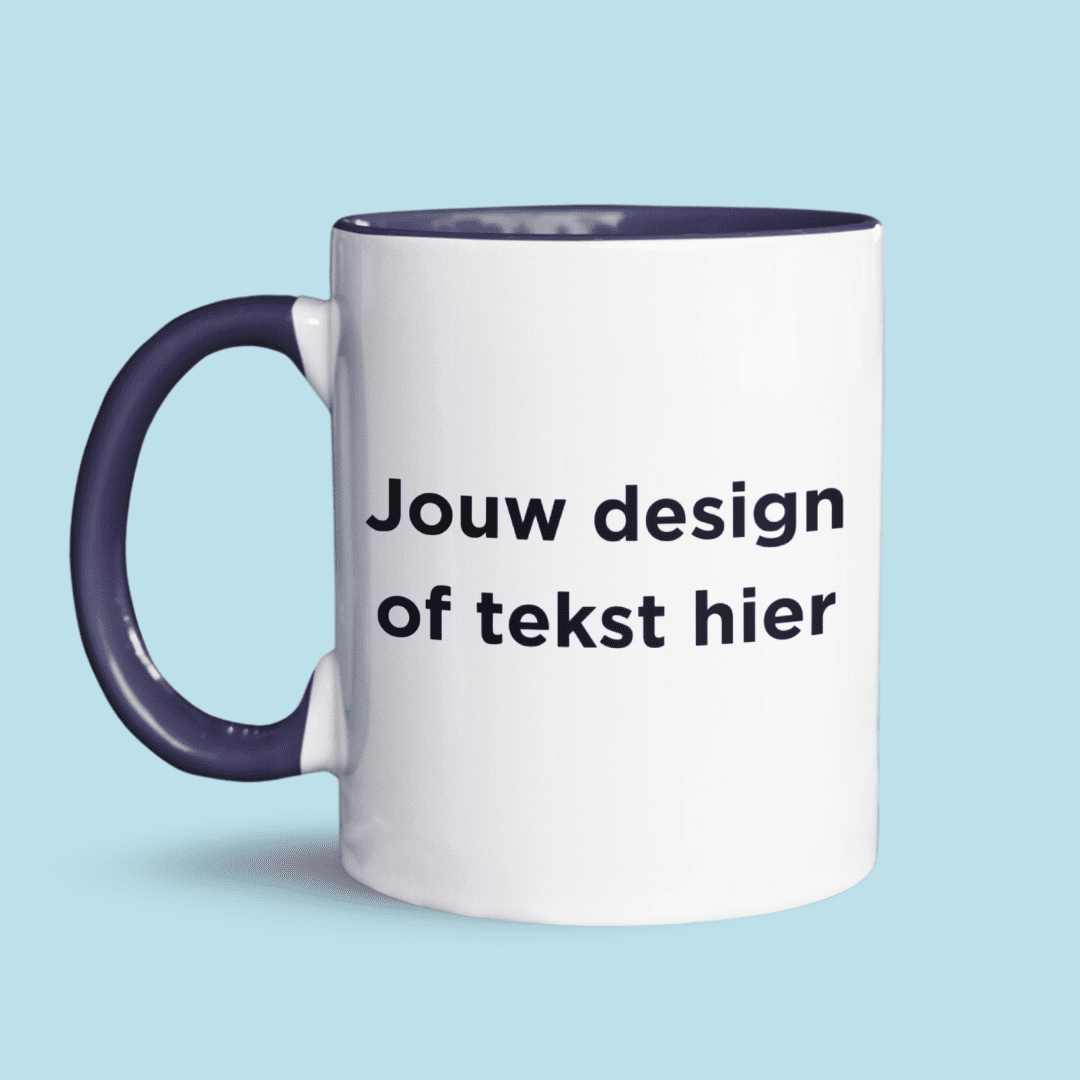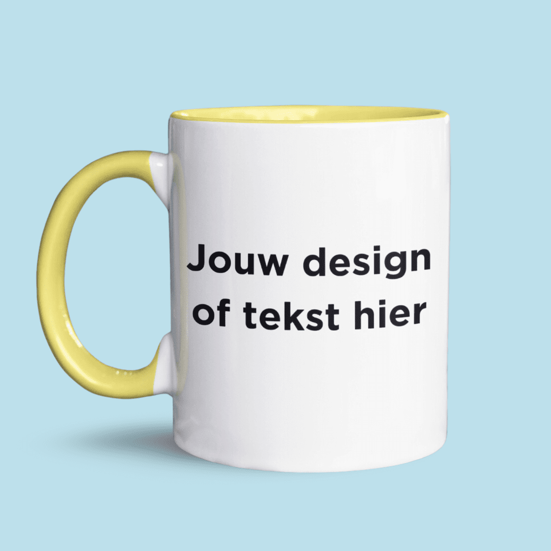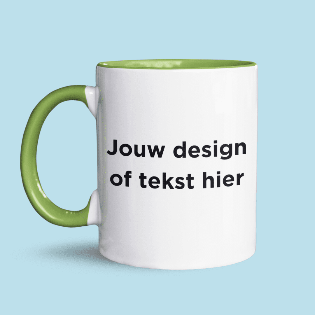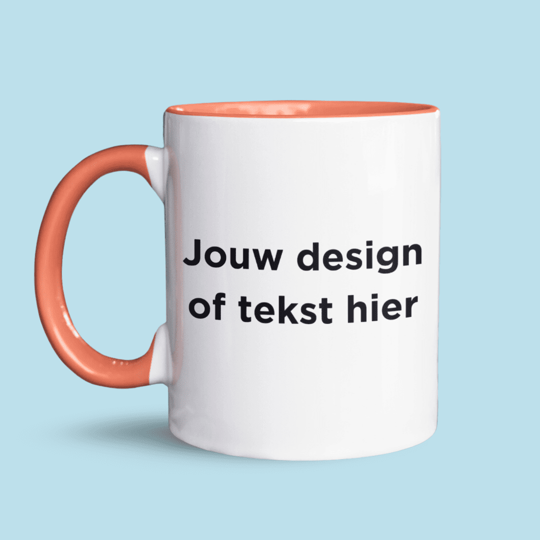 - Eigen design: Jij maakt het ontwerp helemaal zelf, van tekst tot afbeelding. Je kunt kiezen tussen een mok met gekleurde binnenkant en oortje, een gekleurd randje en oortje, een blanco mok, of een magic mok waarvan het design zichtbaar wordt als er een warme drank in wordt geschonken.